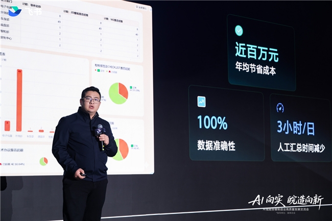 奇瑞捷途数字化高级经理李尚分享了捷途出海的“加速秘籍”。在全球化扩张中,捷途利用飞书多维表格与 AI 搭建了海外业务中台,实现了阿拉伯语投诉邮件的秒级翻译与指令转化,助力中、沙、埃等五国团队实现跨时区、跨语言的高效对账,彻底破解了国际协作的效率瓶颈。在改装车零部件管理中,捷途搭建的“零部件成熟度智控平台”实现单项目年节支近百万元。此外,捷途通过与飞书联合举办“效率先锋大赛”激活全员创新,产出 28 个 AI 实战案例,直接提效收益超 1000 万元。